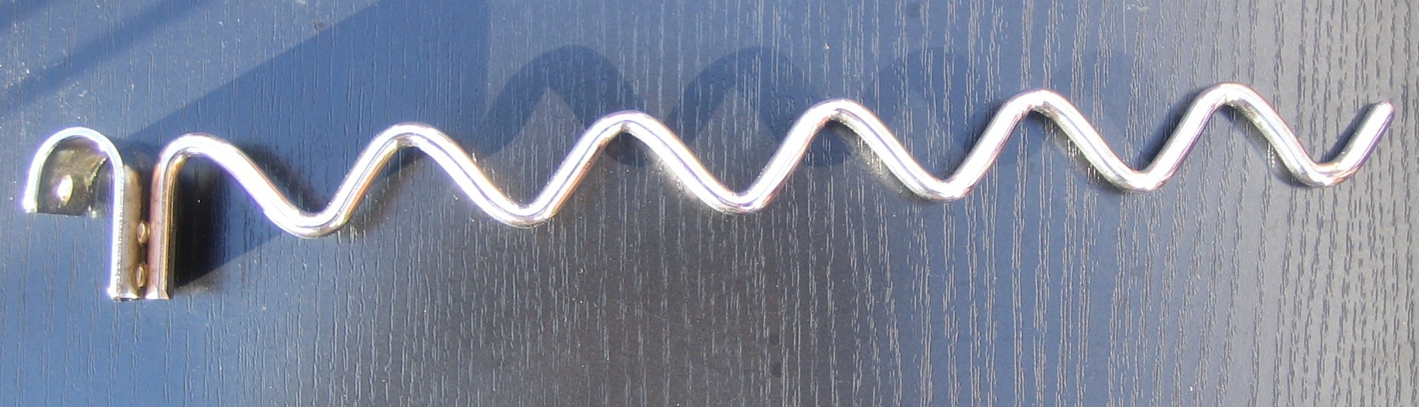 Einfacher Haken für die Aufhängung auf ein Oval-Profil 15x30mm. Länge 350mm, Durchmesser ?6mm. | Einfacher Haken für die Aufhängung auf ein Oval-Profil 15x30mm. Länge 40mm, Durchmesser ?6mm. | Verchromter welliger Haken, Länge 28cm. |