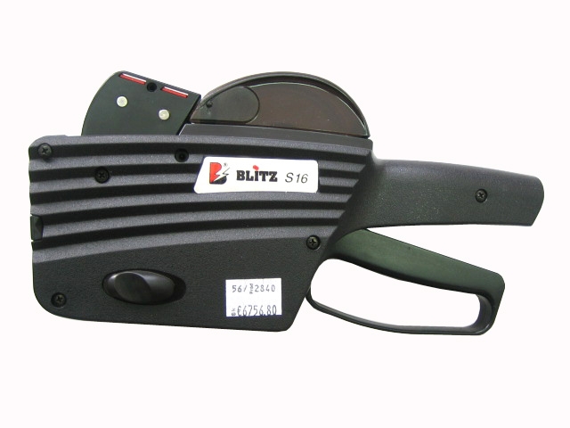 | Two-line label gun Blitz S16 using label Contact 25x16, 8 characters per line. Colour black with alfanumeric data. |