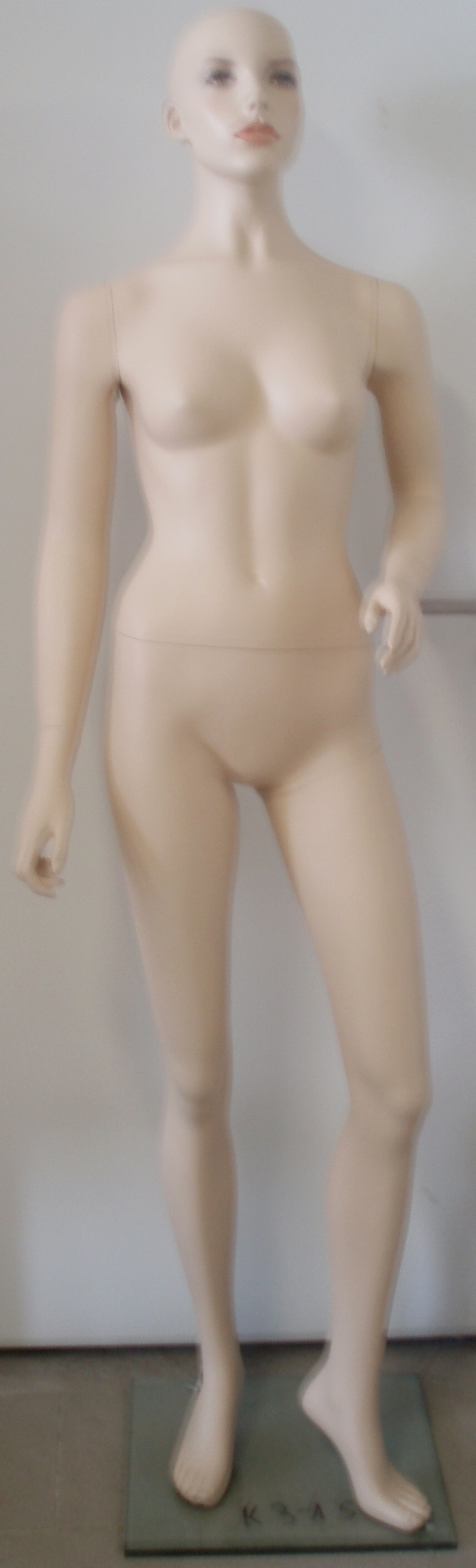 Woman mannequin of white colour, face with make-up, firm hair, the right leg forward. | Ladies mannequin body-plastic material | |