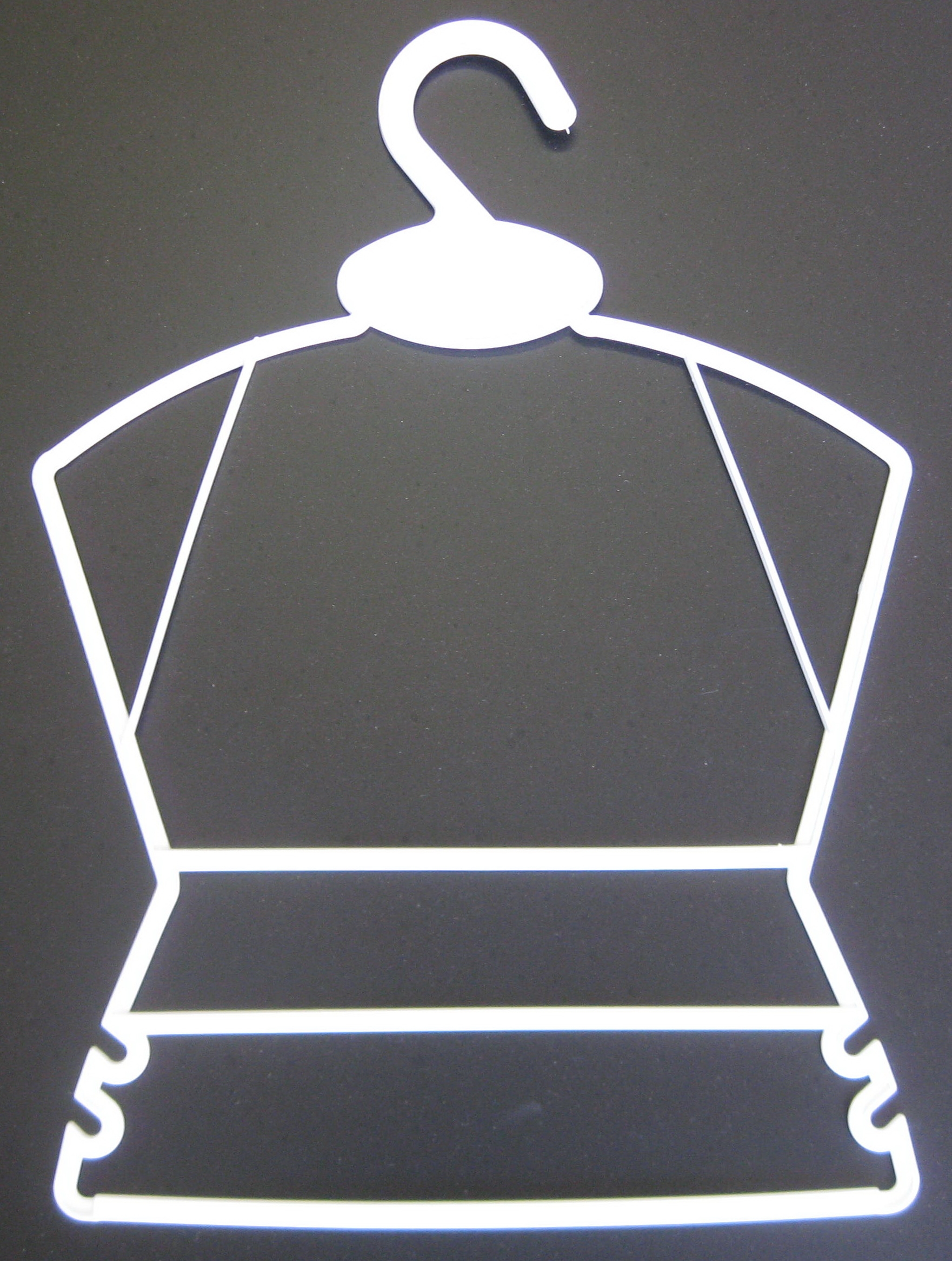 Plastic moulded hanger with cross-tie a 2 clips, width 43cm. | Plastic hanger with cross-tie, width 32cm. Swivelling hook. | Plastic moulded hanger , width 35cm. |