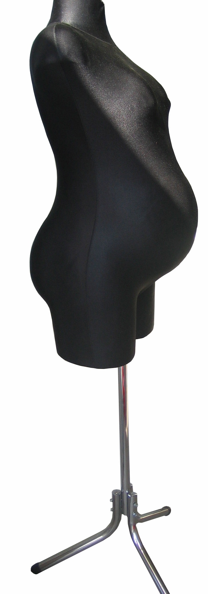 Children dress form. Polystyren body with elastic black lining, chrome-plated metal stand. | Pregnant woman dress form. Polystyren body with elastic black lining, chrome-plated metal stand. | Man dress form. Polystyren body with elastic black lining, chrome-plated metal stand. |