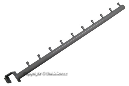 Chrómované šikmé rameno na stenu, uhoľ sklonenia 20 ° nadol, zvarenec z rúrkového profilu ?25mm, dĺžka 500mm, s 10 kolíčkami ?5x13mm, rozteč kolíčkov 35mm. | Rameno z hranatého profilu 20x20, 41cm so 7 gulička | Rovné rameno zinkované na variantov |