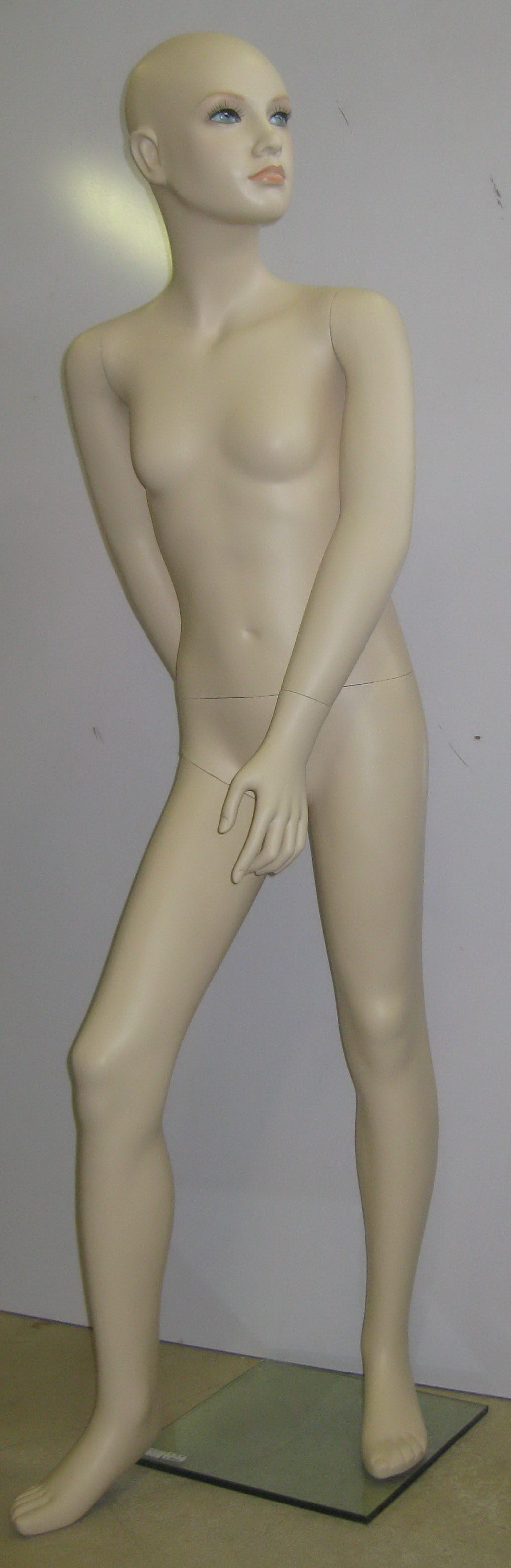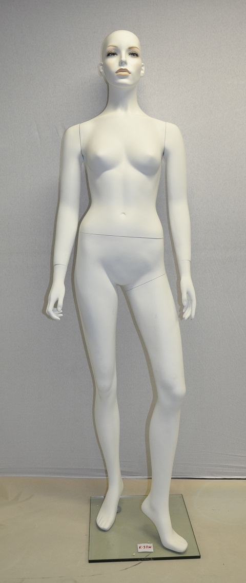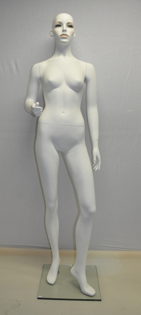 Detský manekýn, chlapec, výška 150cm, telová farba, sklenene podstavec, tvár s make-upom, bez vlasy. | Detský manekýn, dievča výška 150cm, telová farba, sklenene podstavec, tvár s make-upom, bez vlasy. | Dámsky manekýn, bielo lakovaný, so skleneným podstavcom. Výška 179cm, váha 14kg. prsia 84cm, pas 63cm, boky 87cm. |
