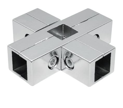 Vnútorná štvorcestná spojka "kríž" na jakel 25x25mm, pochrómovaná zliatina.