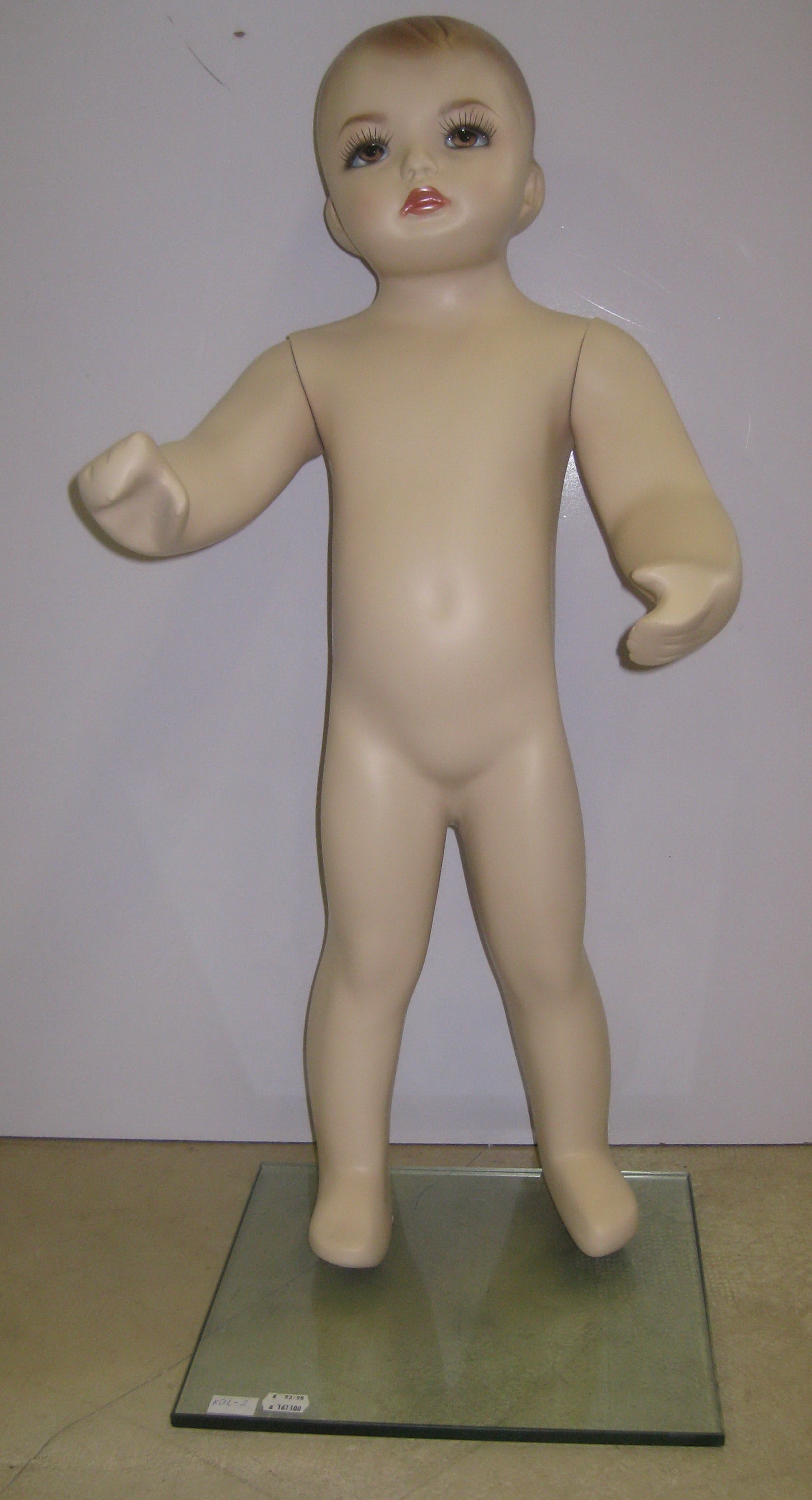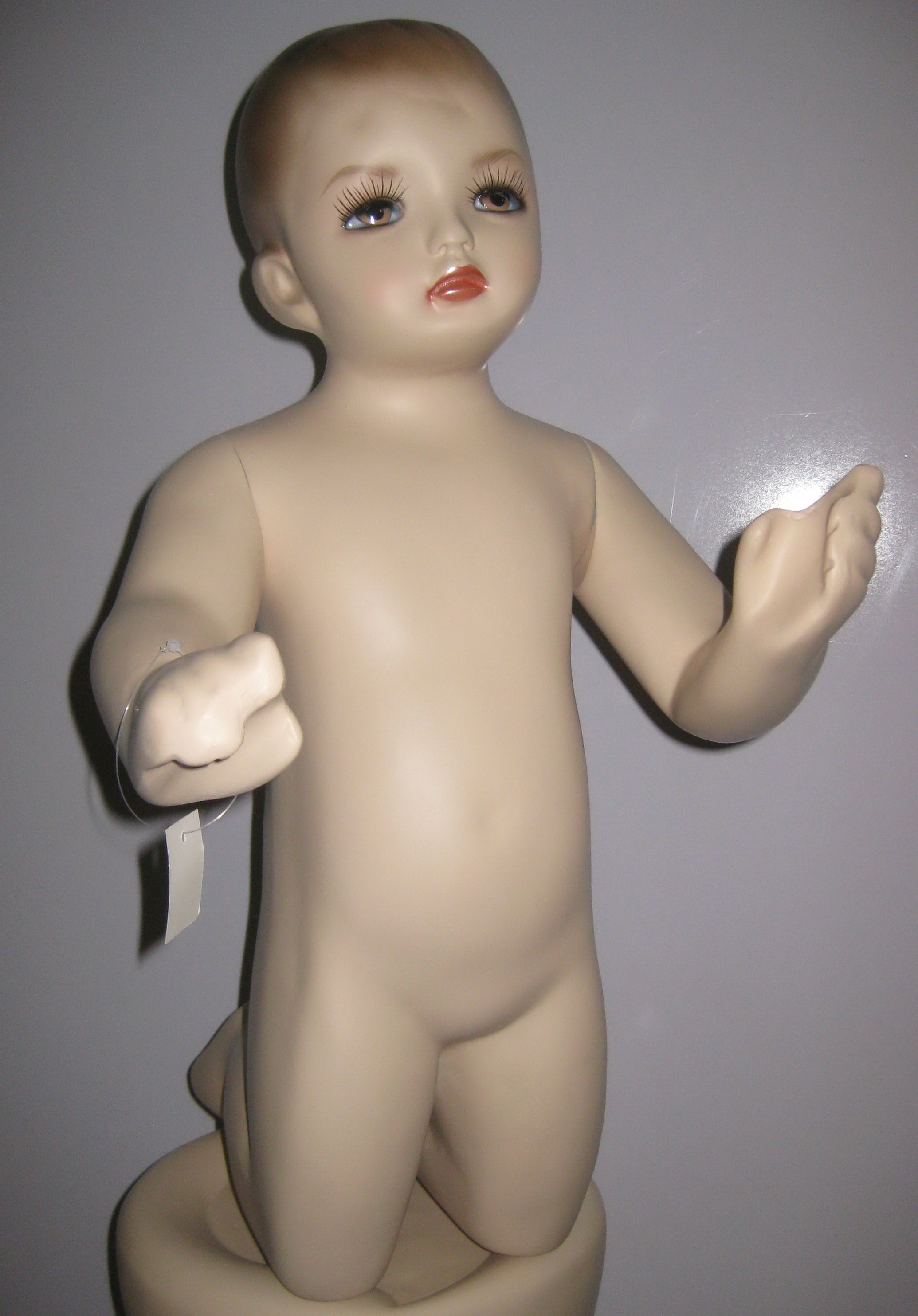 Detský manekýn, chlapec, výška 150cm, telová farba, sklenene podstavec, tvár s make-upom, bez vlasy. | Detský manekýn, dievča výška 150cm, telová farba, sklenene podstavec, tvár s make-upom, bez vlasy. | Detský manekýn, bábätko výška 0, 8m, telová farba, podstavec skleneny, tvár má make-up, pevné vlasy. |
