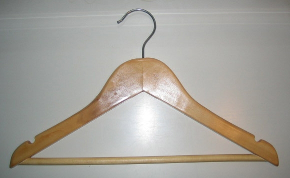 Drevený vešiak na detskú konfekciu, 30cm. Tvar trojuholník, kovový pochromovaný hák, farba prírodná. |
