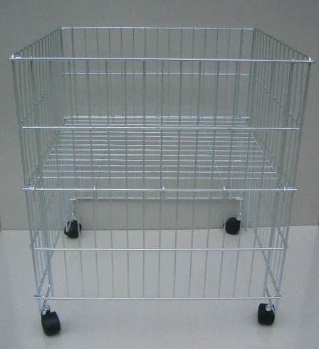Pochromovaný univerzálny drôtený kôš na sieť a do drážkových panelov rozmerov 30x30x15cm. | Pochromovaný univerzálny drôtený kôš na sieť alebo slatwall rozmerov 60x30x15cm. | Chromová nádoba-kôš s nastaviteľným dnom, rozmer š:750mm, h:750mm, h:750mm. |