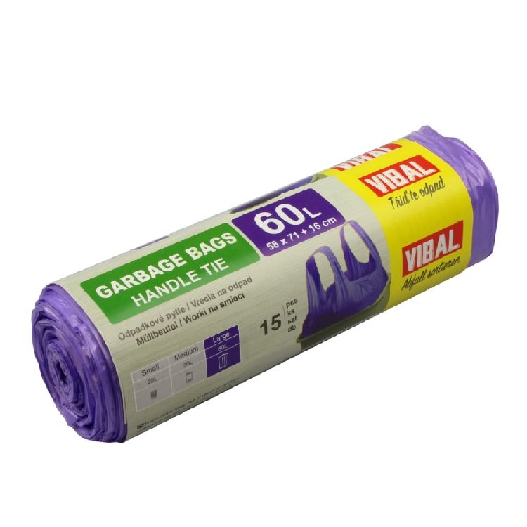 Odpad. pytle QUALITY 60L, černá, 60x75cm, 10ksx40r | Odpad. pytle QUALITY T-60L, fialová, 60x87cm, 15ksx30r | Modrý sáček 60L zavaz. /10ks/60r/66x72+20/12m/110gr |