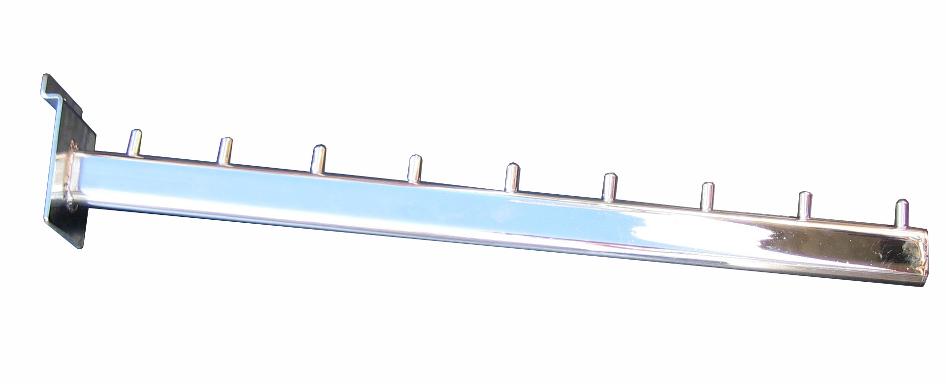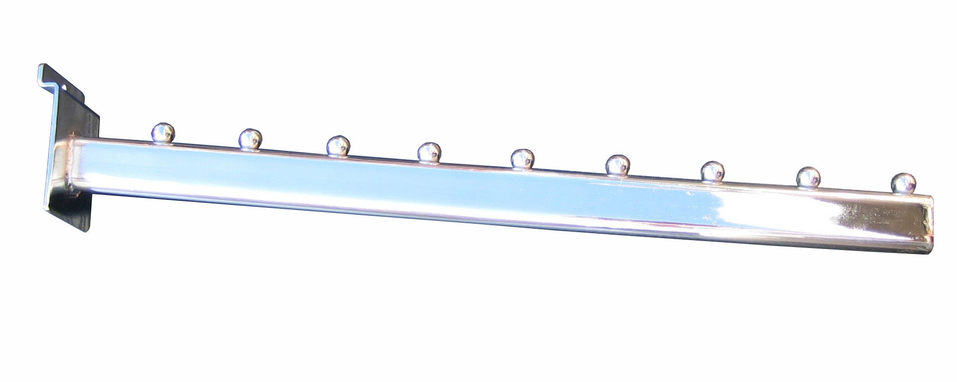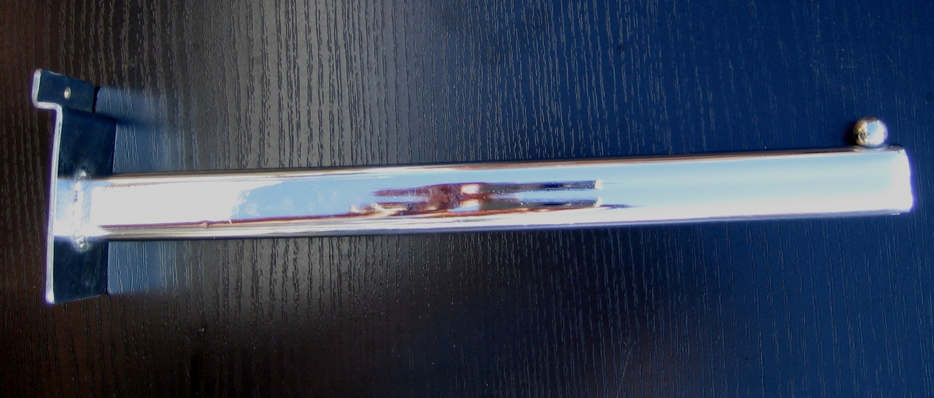 Slatwall pochrómovaný jednoduchý háčik 20cm | Slatwall pochrómovaný jednoduchý háčik 25cm | Chromové rovné rameno 30cm s jednou guličkou |