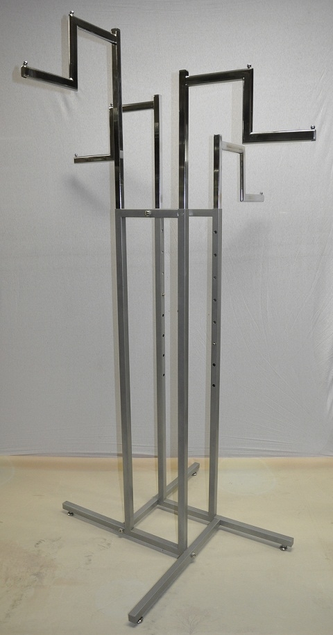 Pochrómovaný štvorramenný stojan, ramená sú v tvare Z, nastaviteľný. | Pochrómovaný štvorramenný stojan, ramená sú v tvare Z, nastaviteľný. Spodná časť je strieborne nalakované. |