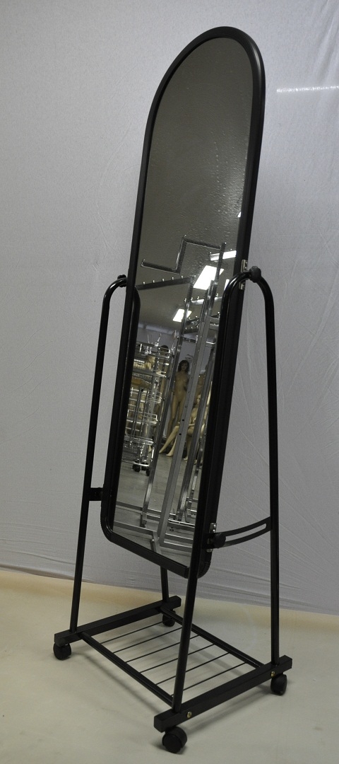 Pojízdné zrcadlo velké, hliníkový rám, černý lak. Celková výška zrcadla 155cm, rozměry samotného zrcadla 122x39cmm | ||
